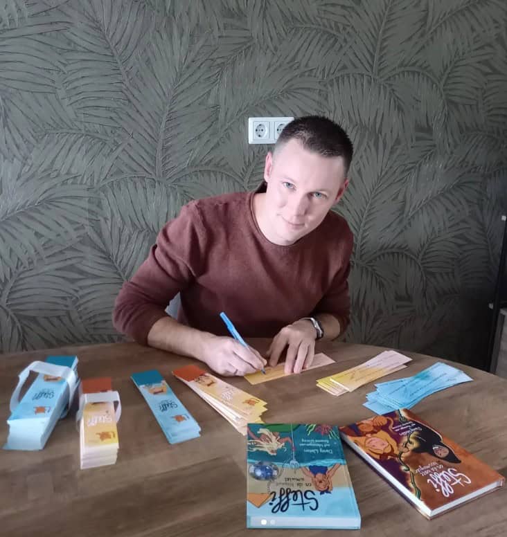 Bij de geboorte van mijn dochter wilde ik iets voor haar maken. Iets waarvan ze later zou kunnen zeggen: 'Wauw, dat heeft papa voor mij gemaakt.' Mijn creativiteit speelt zich vooral in mijn hoofd af, maken met de handen is niet mijn talent. Dus bedacht ik op dat moment dat ik maar een kinderboek ging schrijven. En ik ben maar gewoon aan de slag gegaan, met als gevolg dat het eigenlijk uit de hand gelopen is, hoe leuk is dat! Het is niet meer één boek, inmiddels zijn het er al twee en nummer drie komt bijna uit! En het is niet meer alleen voor mijn dochter, maar de boeken zijn voor iedereen beschikbaar!