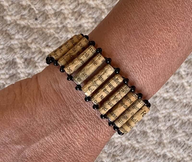 Van papier maak ik kralen en tover deze om naar unieke armbanden.