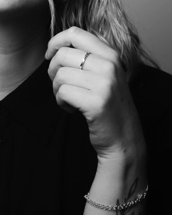 Mijn stijl is uitgesproken maar draagbaar. Ik werk met heldere vormen en sterke volumes, en zoek altijd naar een balans tussen zachtheid en karakter. Elk juweel mag aanwezig zijn, maar moet ook vanzelf aanvoelen op het lichaam als iets dat je niet aandoet, maar meeneemt als deel van wie je bent.